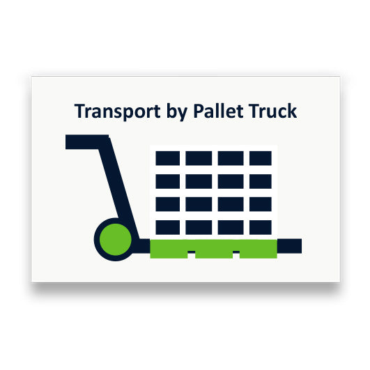 Symbol: TRANSPORT PER HUBWAGEN bzw. TRANSPORT BY PALLET TRUCK