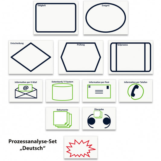 Haftsymbole zur Durchführung der klassischen Prozessanalyse mit Hilfe der EPK-Modellierung (Ereignisgesteuerte Prozesskette).